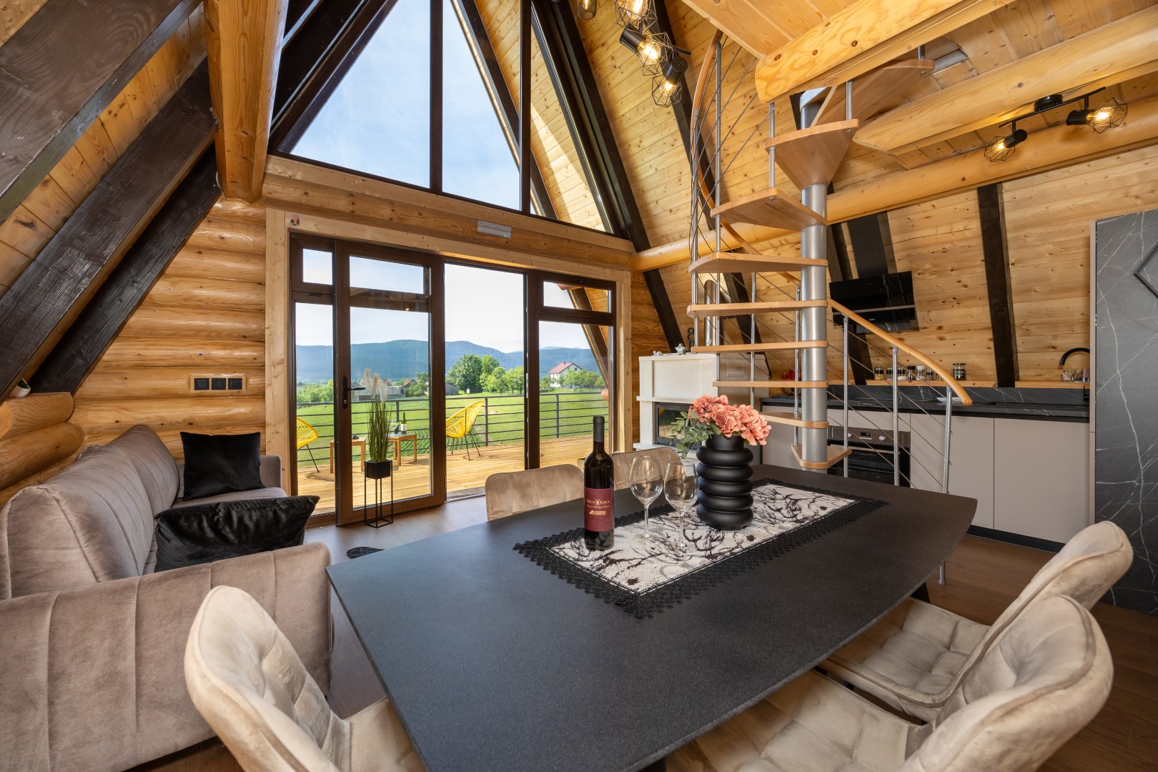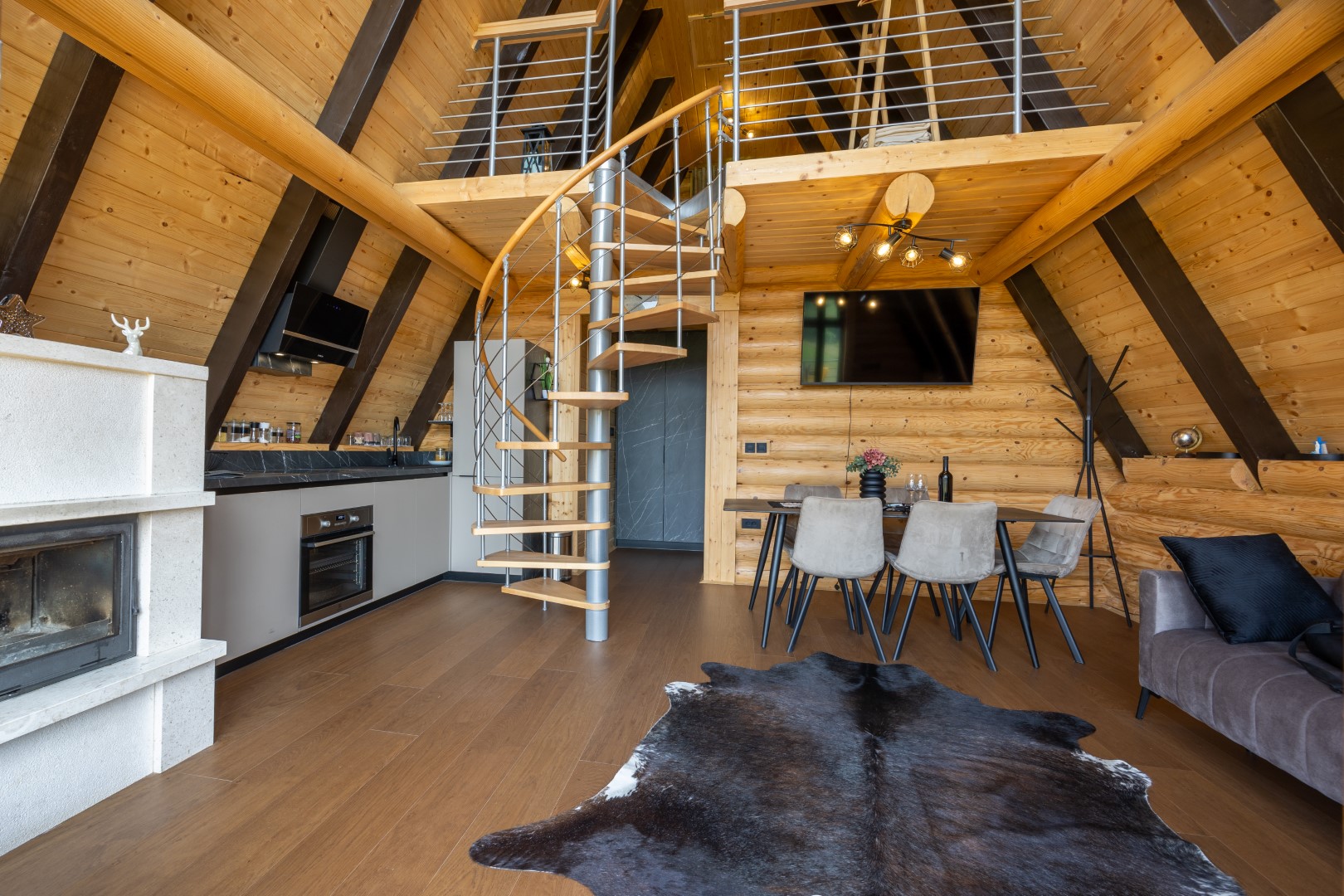 U dnevnom boravku kuće za odmor Sokolac osjetit ćete pravi duh doma uz toplinu drvenih elemenata i udoban namještaj koji poziva na opuštanje. Ovaj prostor, ispunjen prirodnim svjetlom, savršeno je mjesto za zajedničke trenutke s obitelji i prijateljima, bilo da uživate u igri društvenih igara ili jednostavno opuštate uz omiljenu knjigu. S pogledom na predivnu prirodu Like, svaki trenutak proveden ovdje postaje posebno iskustvo, a vaš dnevni boravak postaje srce kuće, gdje se stvaraju uspomene koje traje do vječnosti.