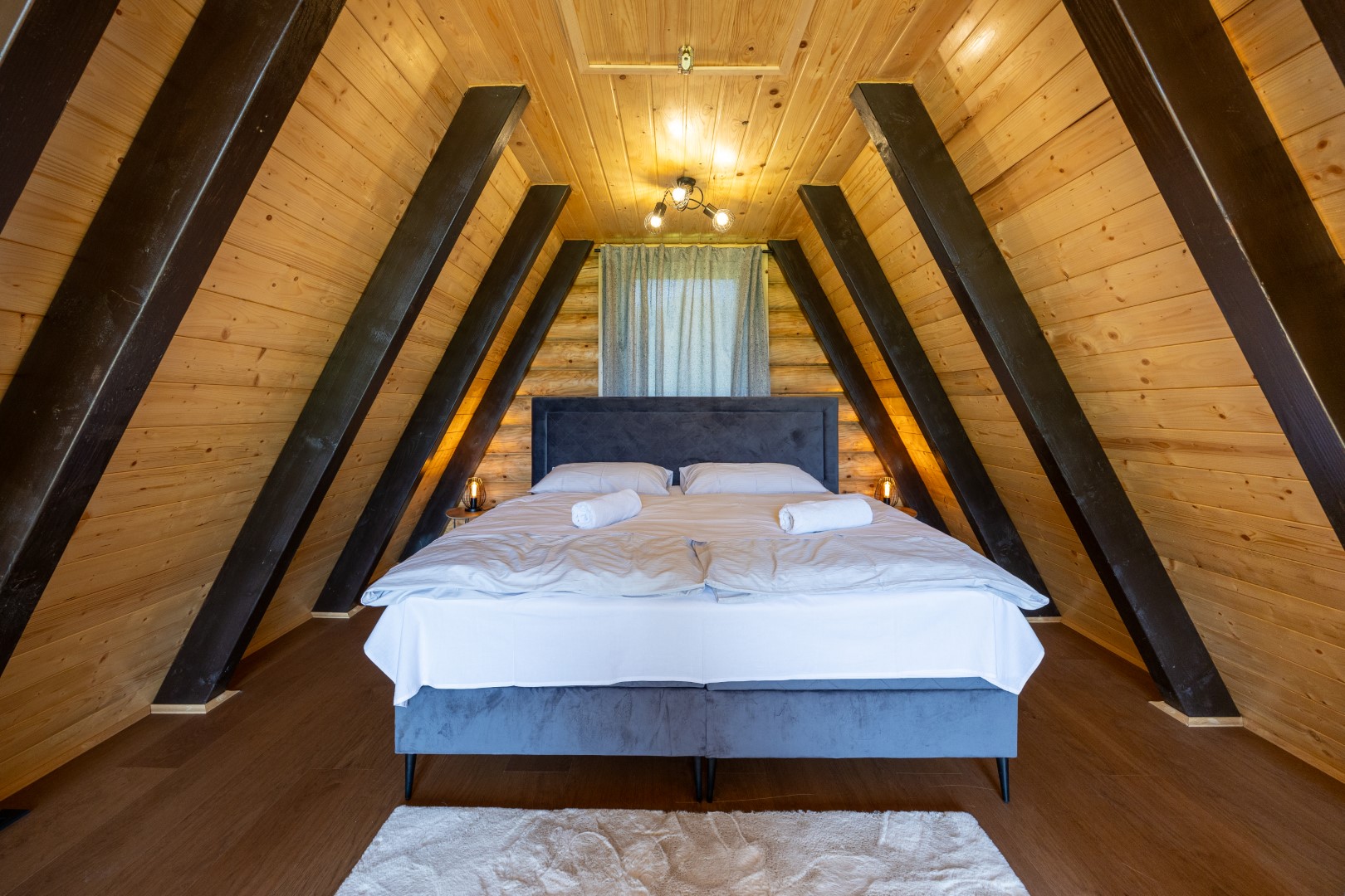 U našoj spavaćoj sobi, svaki san postaje stvarnost, a svaka noć ispunjena spokojem i udobnošću. S pažljivo odabranim namještajem, prostranim krevetima i toplim bojama, ovaj prostor poziva vas da se opustite i napunite energijom za sljedeći dan avantura u Lici. Osjetite miris svježeg drva i zvuk tihe prirode koja vas okružuje dok se budite na mirnom mjestu udaljenom od svakodnevnog stresa. Tu ćete pronaći svoj kutak za meditaciju, čitanje ili jednostavno uživanje u trenutku, dok vas nježne zavjese štite od jutarnjeg sunca, stvarajući savršenu atmosferu za odmor i regeneraciju. Uživajte u spavaćoj sobi koja nije samo prostor, već pravi mali raj za dušu, gdje svaka noć donosi novi san.